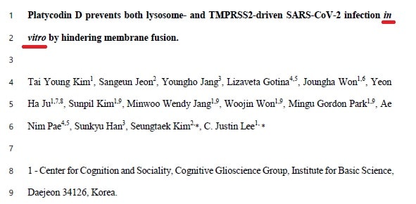 제목에 빨간 줄로 그어 놓은 부분인 "in vitro"는 시험관 시험을 의미합니다. 즉 인체에 적용하는 임상을 거치지 않은 연구라는 뜻입니다.